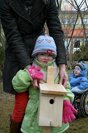 Uczestnicy spotkania dowiedzieli się, jak można pomóc zwierzętom i ptakom przetrwać zimę. W tym celu leśniczy zabrał nas na spacer do ogrodu, podczas którego zawiesiliśmy w ośrodkowym karmniku specjalną karmę z zatopionych w łoju ziaren lnu, zbóż, słonecznika, prosa itp. Podczas pobytu na świeżym powietrzu, gość pokazał również, gdzie należy zawiesić budki lęgowe dla sikorek, które podarował w prezencie. Dzieci w dowód wdzięczności zaśpiewały Panu leśniczemu piosenkę ,,Kochajmy ptaki."