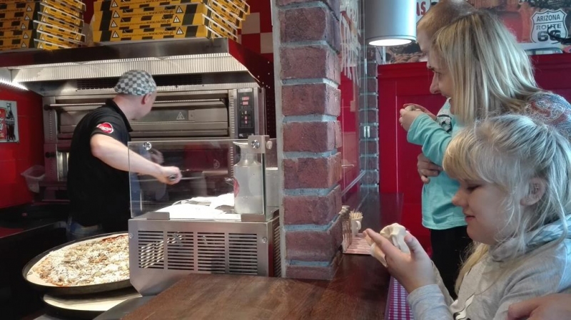 Największe wrażenie zrobił na nas pokaz przygotowywania pizzy. Mogliśmy podglądać pracę kucharza w kuchni oraz poznać tajniki wyrabiania ciasta na pizzę. Wspólnie wybraliśmy składniki i z niecierpliwością czekaliśmy na nasze zamówienie. Kiedy pizza piekła się w gorącym piecu, dzieci miały czas na przypomnienie zasad właściwego zachowywania się w restauracji i kulturalnego sposobu spożywania posiłków. Następnie przystąpiliśmy do degustacji. Ku naszemu zdziwieniu, wielkość pizzy przerosła nasze oczekiwania, ale nie daliśmy się jej! Po zjedzeniu całej potrawy z pełnymi brzuszkami i bardzo zadowoleni wróciliśmy do ośrodka. Dzieci zgodnie stwierdziły, że pizza była bardzo smaczna
