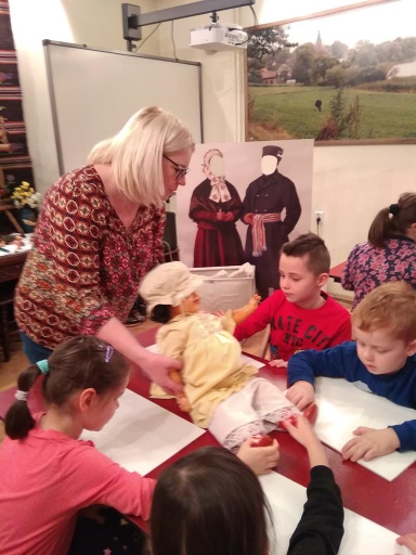 Przedszkolaki z grupy Starszaki uczestniczyły w warsztatach muzealnych „Dzieckiem być – dawne zabawki ludowe”, organizowanych przez Dom Gazety Olsztyńskiej. Dzieci miały możliwość obejrzeć dawne zabawki wykonane z drewna, gliny i papieru. Dowiedziały się także jakie obowiązki miały dzieci zamieszkujące dawniej warmińską wieś. Na koniec zajęć dzieci wykonały własną zabawkę.