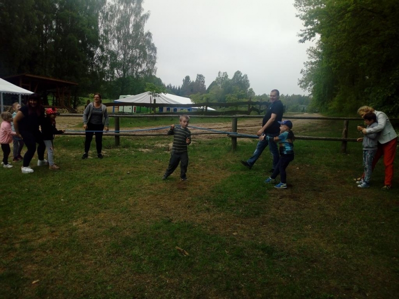 23 maja w grupie Starszaków obchodzono Dzień Rodziny, który już na stale zagościł w kalendarzu przedszkolnym. Z tej okazji odbyła się wycieczka do Leśnego Arboretum Warmii i Mazur w Kudypach. Podczas spaceru w ogrodzie botanicznym obserwowaliśmy wiele gatunków drzew i kwiatów. Graliśmy na leśnych cymbałach. Kolejną atrakcją była tablica „Zgaduj Zgadula”, gdzie dzieci za pomocą dotyku rozpoznawały leśne skarby (np. szyszki, kamienie). Następnie odbyły się zabawy na leśnej ścieżce sensorycznej. Po edukacyjnym spacerze nastąpił czas na odpoczynek i ognisko oraz skosztowanie muffinek przygotowanych przez dzieci specjalnie dla rodziców. Na zakończenie wycieczki, po wspólnych zabawach ruchowych (przeciąganie liny, zabawy z piłką) Starszaki wręczyły rodzicom prezenty.