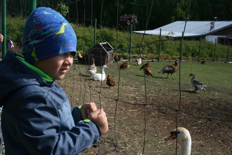 15 maja grupa Misiaki wybrała się na wycieczkę do Gospodarstwa Agroturystycznego JANCZARY. Wspólnie z rodzicami mieliśmy okazję podziwiać znajdujące się tam mini zoo. Pan przewodnik w bardzo interesujący i przystępny sposób przedstawił nam przesympatycznych mieszkańców gospodarstwa. Dzieci poznały m.in. urocze kozy miniaturki, zabawną świnkę wietnamską, rozmaitych przedstawicieli ptactwa, a więc: kury, gęsi, kaczki i indyki oraz piękne, dostojne konie. Następnie udaliśmy się do sali animacji, w której czekała na nas przemiła pani animatorka w stroju Minionka. Ruszyliśmy do zabawy przy akompaniamencie muzyki. Tańcom i wygibasom nie było końca! Po takim wysiłku wszyscy zasłużyli na posiłek. Każdy uczestnik wycieczki miał okazję samodzielnie upiec i skosztować kiełbaski z ogniska. Co więcej – na deser otrzymaliśmy przepyszną drożdżówkę! Pobyt na świeżym powietrzu stał się okazją do podziwiania piękna budzącej się do życia wiosny, aktywnego wypoczynku w gronie najbliższych osób oraz integracji grupy przedszkolnej. Zarówno chłopcy, jak i rodzice, spędzili miło i szczęśliwie czas. Sprzyjała temu również pogoda, która, w tym deszczowym i zimnym tygodniu majowym, zaskoczyła nas wyższą temperaturą i promieniami słońca.