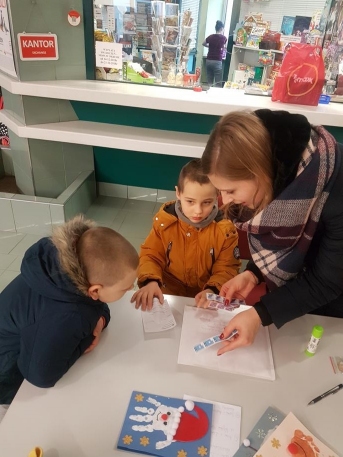 Przed chłopcami z grupy Misiaki stało bardzo odpowiedzialne zadanie – musieli wysłać przygotowane przez siebie na początku grudnia kartki bożonarodzeniowe dla rodziców! W związku z tym, 14 grudnia wybraliśmy się na wycieczkę na pocztę. W drogę ruszyliśmy tramwajem, którym chłopcy uwielbiają podróżować. Na początku pobraliśmy bilecik z numerkiem i oczekiwaliśmy w kolejce do okienka. Mieliśmy okazję poznać przemiłą panią pracującą na poczcie, która sprzedała nam niezbędne koperty oraz znaczki. Następnie rozpoczęliśmy pakowanie kartek oraz ich adresowanie i naklejanie znaczków. Misiaki spisały się przy tym znakomicie! Chłopcy z wielkim zainteresowaniem przygotowywali wyjątkowe przesyłki, które już niebawem do ich domów przyniesie listonosz! W nagrodę za wzorowe wypełnienie zadania odwiedziliśmy pobliski McDonald’s, w którym chłopcy skosztowali zakręconych frytek J.