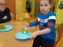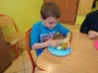 W grupie Starszaków realizowany jest program autorski „Kulinarne podboje”, którego celem jest minimalizowanie wybiórczości pokarmowej oraz wprowadzanie do diety nowych produktów. W ramach pierwszych warsztatów dzieci przygotowały szaszłyki – owocowe jeże. Najpierw przedszkolaki wybrały się do pobliskiego sklepu, gdzie kupiły potrzebne produkty (gruszki, winogrono, mandarynki, banany, pestki słonecznika). Następnie powstały kolorowe kompozycje z owoców. To była świetna zabawa.