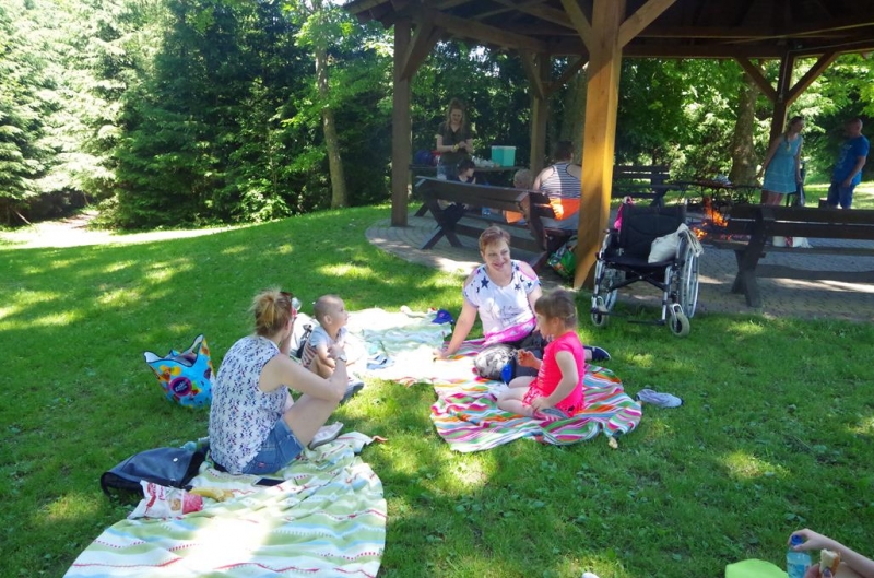 29 maja grupa Pogodziaków pojechała do zaprzyjaźnionego Ośrodka Szkolno-Wychowawczego w Szymanowie. Oprowadzono nas po zwierzyńcu, gdzie dzieci mogły zobaczyć: lamy, osły, konie, pawie, króliki, kozy i inne zwierzęta. Następnie przeszliśmy się po pięknym arboretum. Kolejną atrakcją było ognisko. Mogliśmy upiec kiełbaski. Na koniec Pogodziaki wraz z rodzicami odpoczywały na kocach podziwiając piękne okolice i bawiły się na placu zabaw.